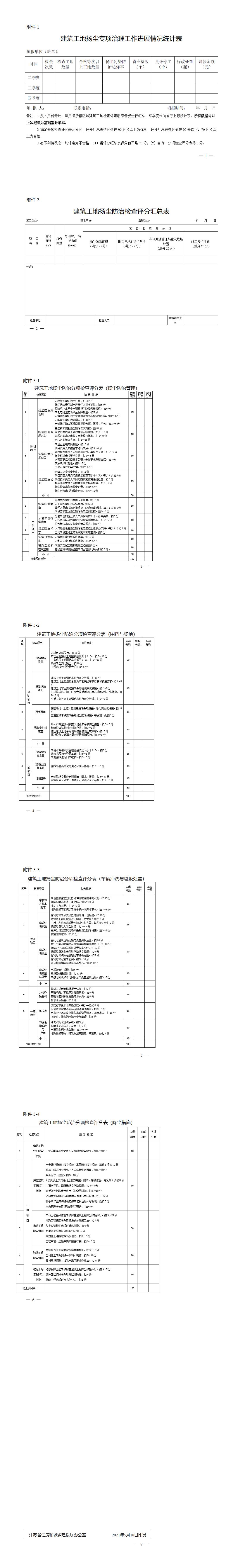 建筑工地揚塵專項治理工作進展情況統(tǒng)計表